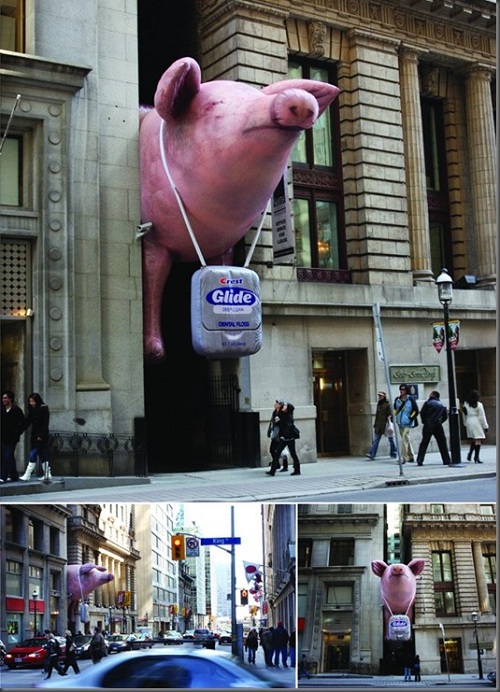 17. Реклама зубной нити Glide разместилась в промежутке между зданиями