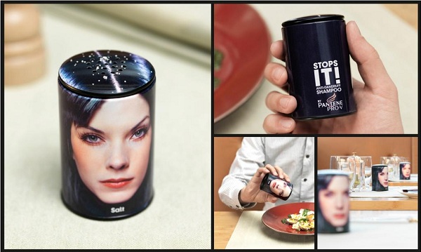 25. Реклама шампуня от перхоти Pantene на солонке в ресторане